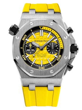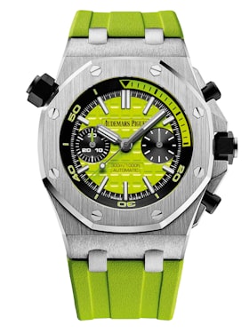 This new release is exceptionally cool. The watch features the automatic caliber 3124/3841 fitted to the 42 mm stainless-steel case that can dive up to 300 meters. What is the 3124/3841 exactly? If you Google it, you'll see it was first used in 2009 in the Jules Audemars Chronograph and really nowhere else since. To put it simply, it's AP's great self-winding 3120 with a two register, date-less module from Dubois Depraz. Again, now that Vacheron has shown its own self-winding chronograph, AP is really noticeably behind its peers – Patek has one for years at this point. Now this movement is an adequate one, and most people who will buy this watch will care little that it is of modular construction, but y'all should know exactly what you're getting.