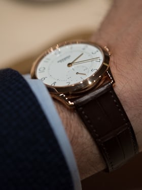 Over all, the Slim d'Hermes Grand Feu Email is a stunning, traditionalist's take on what is becoming a favorite for many watching the leather-maker's increasingly impressive foray into watchmaking. Only 100 pieces will be made, at a price of $23,000. More here.