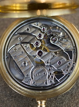 If you are buying for sheer horological value, in my opinion this minute repeater pocket watch from Patek Philippe is absolutely, positively, the watch to bid on in this auction. At 49 mm in diameter, it's a serious piece of horological machinery; based on the inscription it looks to have been a Christmas gift to David from Harriet in 1966. I don't know who David was but he took very good care of this watch; it looks virtually new, with an immaculate case, dial (the watch was retailed by Tiffany) and, most importantly, movement. The movement and what it can do are the real reasons to buy this watch. This is a minute repeater from Patek Philippe from the early 20th century and that means that it is, if not unbeaten, at least unmatched in terms of beauty and quality relative to anything else on the market before or since it was made. The steel work is superb – probably no one has ever done anything better – with lovely, huge jewels set perfectly in hypnotically beautiful countersinks; everything, from the general layout to the last detail of movement finishing, represents the very highest manifestation of the Genevan watchmaking tradition; and a pocket repeater from Patek, made when this one was made, is going to have a volume, clarity, and purity of tone you can't get anywhere else.