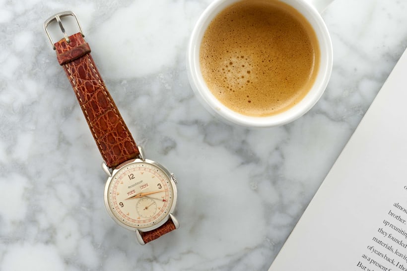When one thinks of the 1940s, we think of two things – the triple calendar complication, and the tear-drop lug shape. Seldom do we find a watch that combines both traits so elegantly, with a true in-house haute horlogerie caliber, in a stainless-steel case! This Jaeger-LeCoultre Triple Calendar is a masterpiece of mid-20th-century design, combining true watchmaking craft and flawless design. A similar watch, though with moon phase, was in fact the personal choice of no less than Pablo Picasso. This Jaeger-LeCoultre is simply flawless, and offers amazing value in the way only a vintage watch can. Find it here.