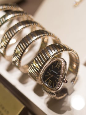Guests were also able to see (many for the first time) other remarkable Bulgari timepieces, including the Octo Finissimo Tourbillon (currently the thinnest tourbillon in the world) as well as catch up with design icons like the Serpenti timepieces. Also in North America for the first time: the Serpenti Incantati Tourbillon (above left).
