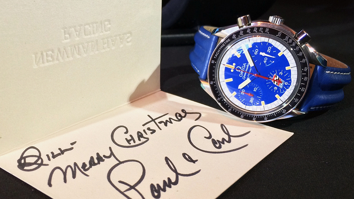 So what is the connection between Paul Newman and a blue-dial Omega Speedmaster that just came up for sale? This very Speedmaster was actually a Christmas gift from Paul Newman to a member of his racing team almost 20 years ago. It is still in an untouched condition and comes with something very special.